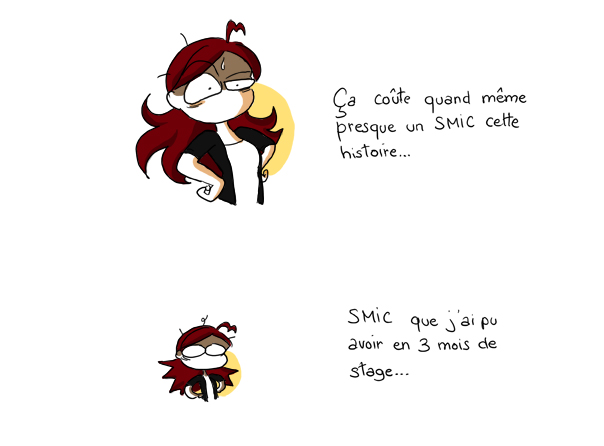 Un Smic? et encore si tu l’as du premier coup XD et en salaire de Macdo ça m’a fait 2 mois XD et tu vera les heures c’est idéal pour gribouiller partout ><