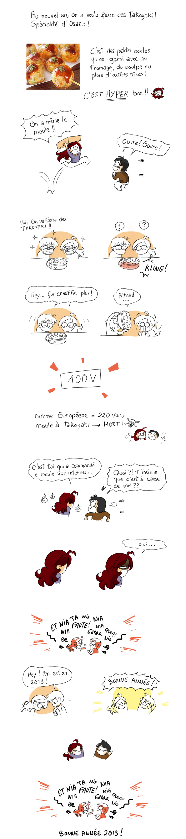 Harrrgggg !! non trop domage, des takoyaki qui vous passent sous le nez …. J’espère que la frustration à été noyer dans la saké chaud pour compenser. Belle année 2013 quand meme