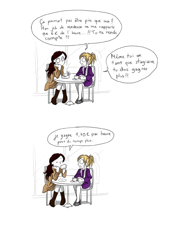 ça nous donne envie de rire hélas c’est la dur réalité j’ai calculer je suis rémunérer 1€42 de l’heure je n’arrive même pas a me prendre un appart merci pour cette bd si véridique je prends beaucoup de plaisir a vous lire