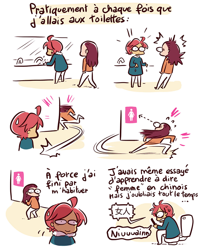 Petite explication pour la petite dame avec son kilo de PQ : En Chine le PQ se prend avant d’aller aux toilettes et apparemment il y a une consommation excessive de papier toilette (ya même des vols de rouleaux) donc je pense que la petite dame était en train de faire son stock pour ramener chez elle xD J’ai même vu des distributeurs avec un QR code à scanner pour regarder une publicité sur son téléphone ce qui donne droit à un nombre limité de feuilles (et si tu veux pas tu payes 7centimes) Perso j’avais toujours mon papier sur moi donc ça va. Et heureusement car dans la plupart des toilettes il n’y pas de PQ…