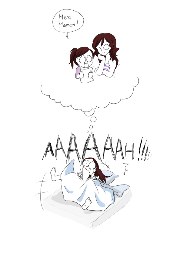 Excellents dessins! pour le tag, « cauchemar » sans le « d »…;D